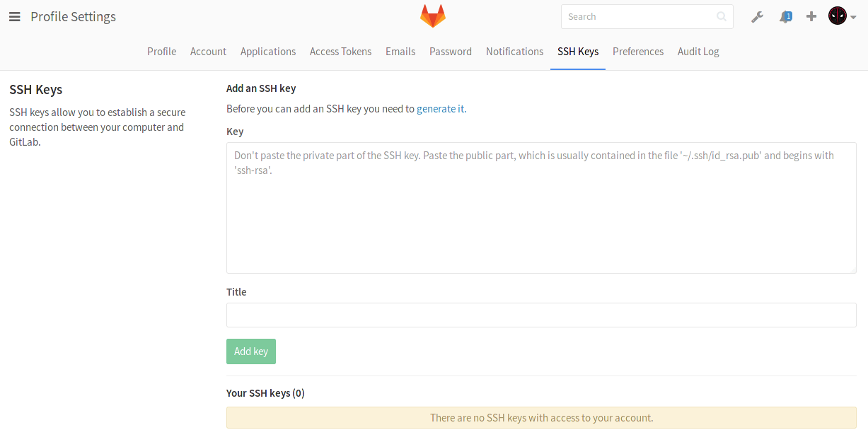 Finally, click on Add key to add it to GitLab. You will be able to see its fingerprint, its title and creation date.