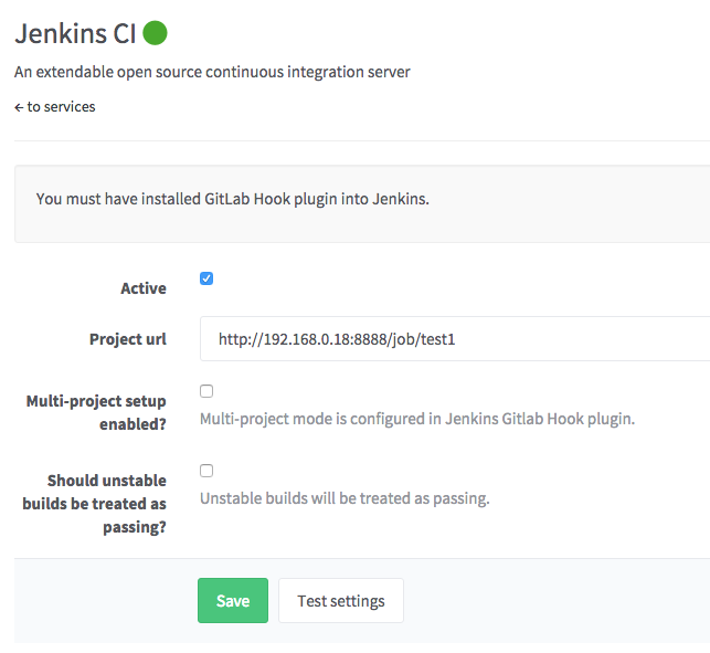 Now navigate to GitLab services page and activate Jenkins