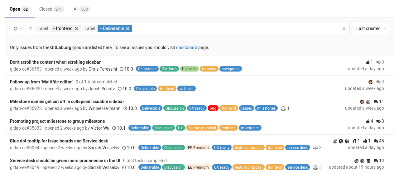 Click the menu bar, then Issues or Merge Requests, which work in the same way, therefore, the following notes are valid for both.